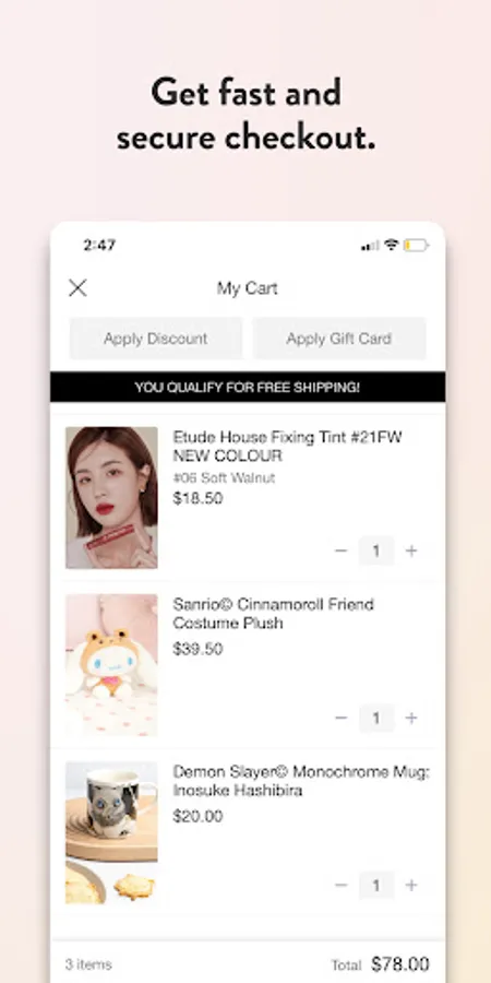 Tap, swipe, shop and secure your new products in an instant with our super easy checkout.