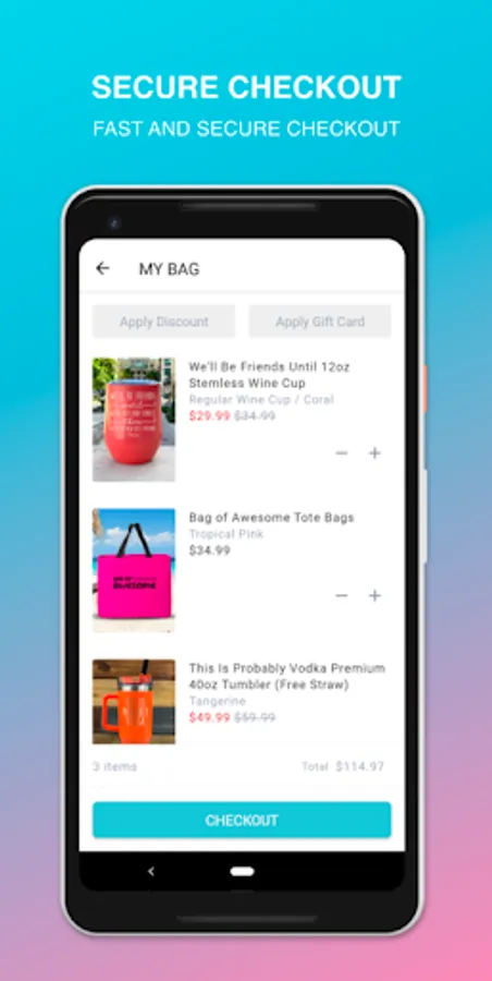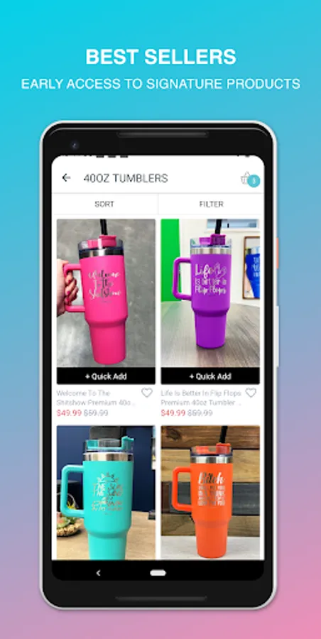 While we specialize in drink ware and tumblers, we also sell Tees, Tanks, Hoodies, Hats, Coffee Mugs, and many other items.