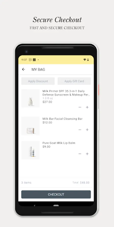 Tap, swipe, shop and secure your new products in an instant with our super easy checkout.