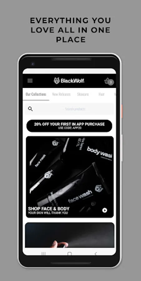 Download the Black Wolf app to access exclusive discounts, early access to collection launches. Everything you love, right at your fingertips.
