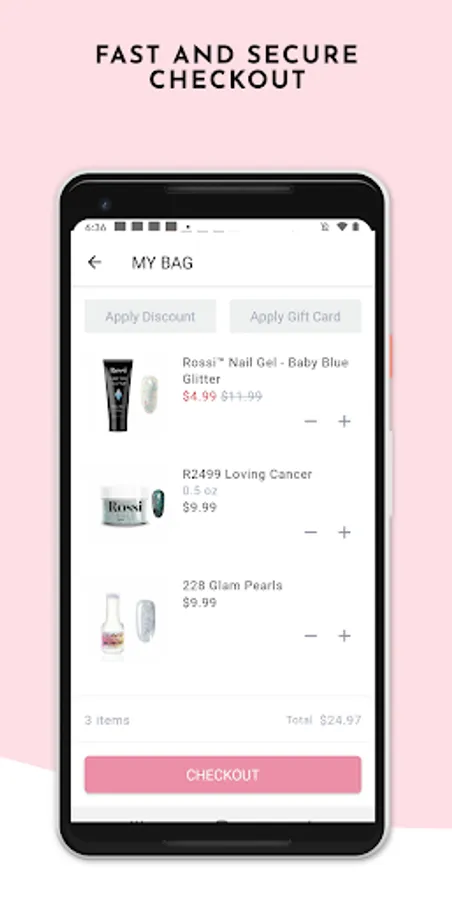 Tap, swipe, shop and secure your new products in an instant with our super easy checkout.