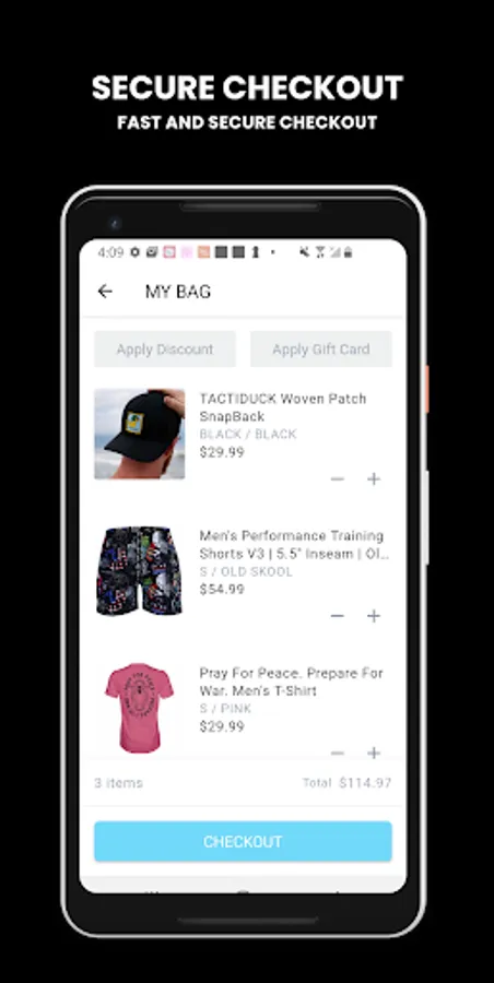 Tap, swipe, shop and secure your new products in an instant while using your own account with saved information.