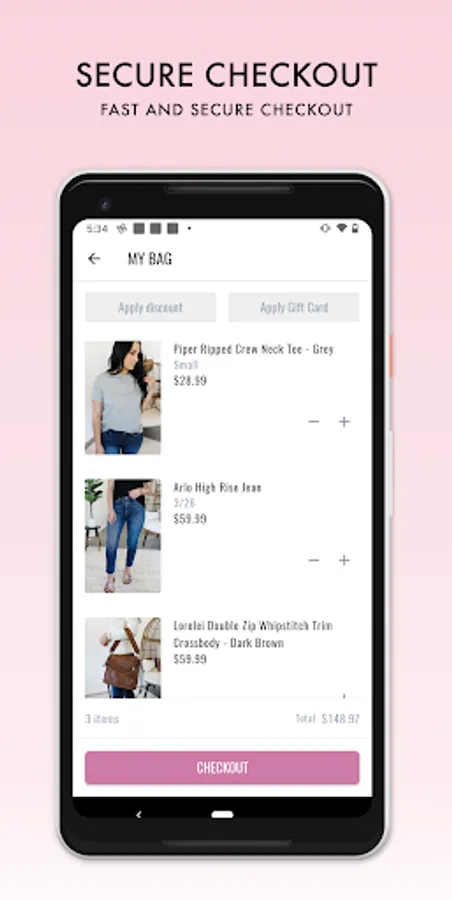 Tap, swipe, shop and secure your new products in an instant with our super easy checkout.