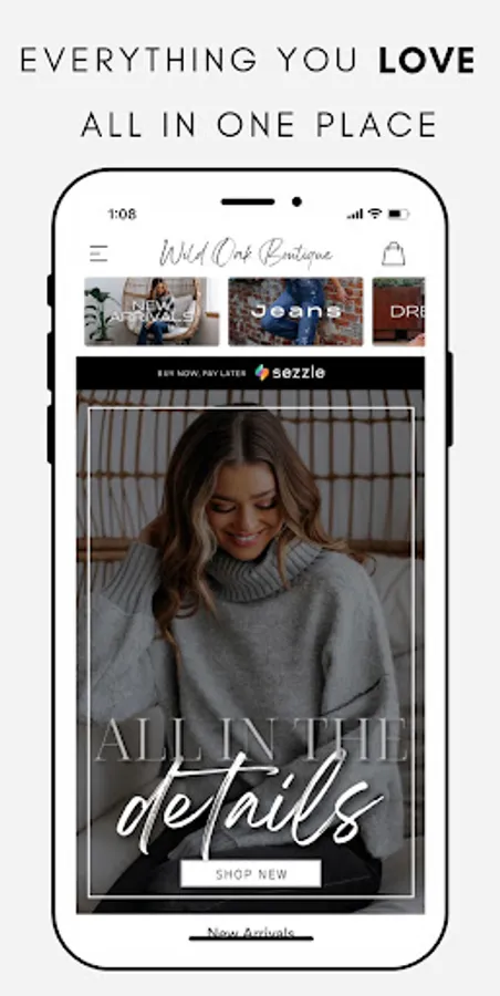 Wild Oak Boutique is your one stop shop for fashionable clothing made for real women. Our goal is to provide women with trendy and stylish fashions at an affordable price to make you feel confident and beautiful! Shop our app to get early access to new arrivals and exclusive discounts!