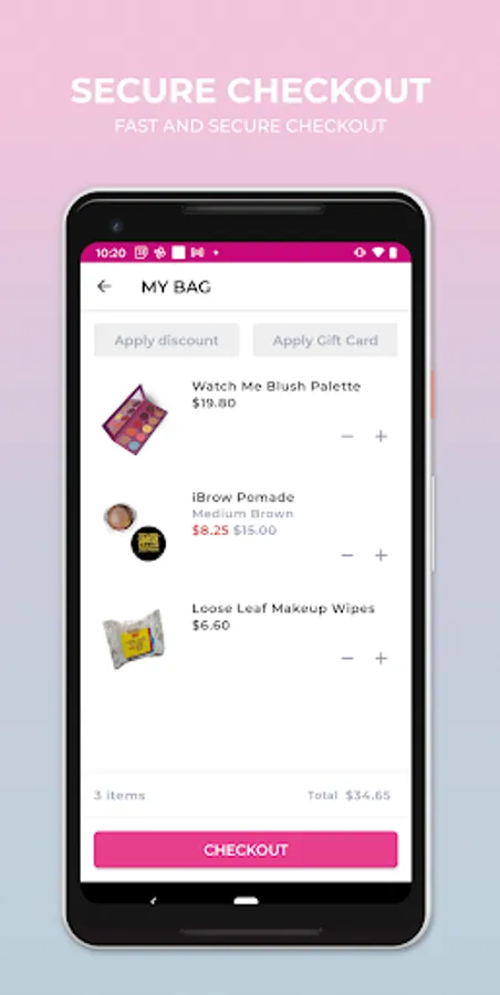 Tap, swipe, shop and secure your new products in an instant with our super easy checkout.