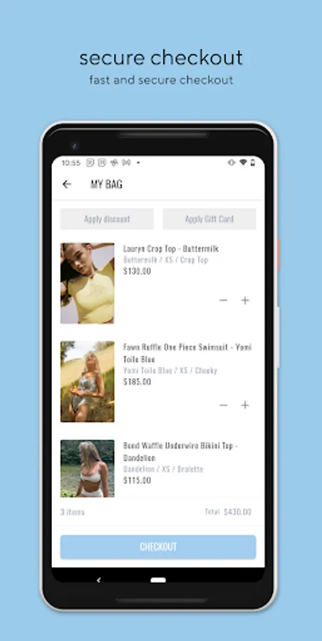Tap, swipe, shop and secure your new products in an instant with our super easy checkout.