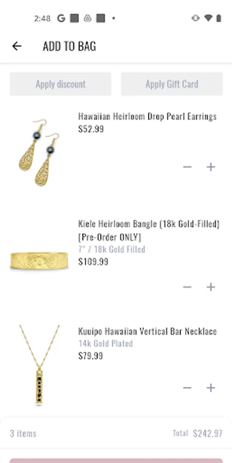 Ka 'Ohana designs and creates beautiful, Hawaiian jewelry. From Heirloom bangles, to plumeria necklaces and bracelets, coral and shell-inspired, Tahitian pearls, & more. Crafted of high-quality gold plated and filled material for beautiful designs accessible for all from the islands. Our entire collection consists of pieces that are intentionally designed to mix and match with ease. Shop now and find your perfect look!