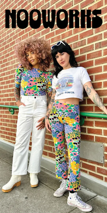 Nooworks is a woman owned, women run business. We make limited edition textiles with artists we love in cuts to make you look and feel good. All our garments are produced in California. We try to source all our materials in the USA and work with incredibly nice people.