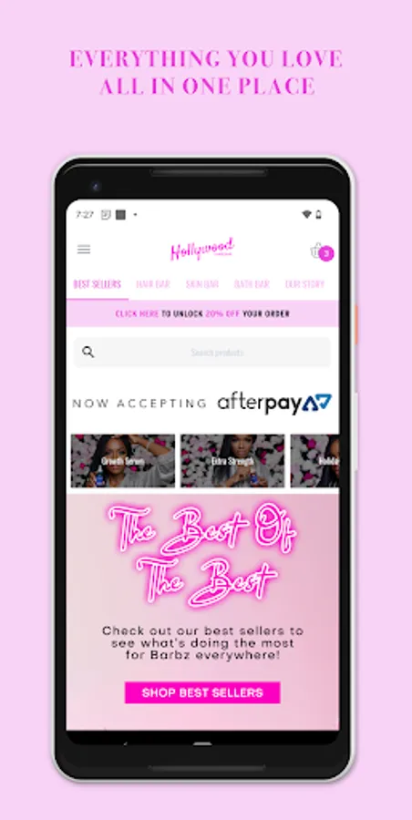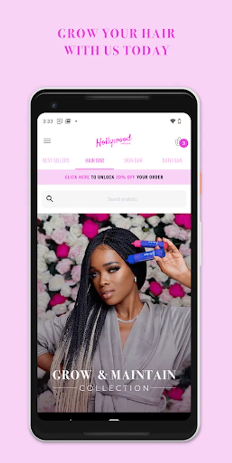 Welcome to the HOLLYWOOD HAIR BAR App! Discover the # 1 Hair Growth Products on the market! With over 1 Million Bottles Sold! Join Our Clique and let's GROW YOUR HAIR! Enjoy Exclusive Launches, Hair Growth Tips & Tricks ; along with Discounts & Deals on The Best All Natural Beauty Line on the Market!