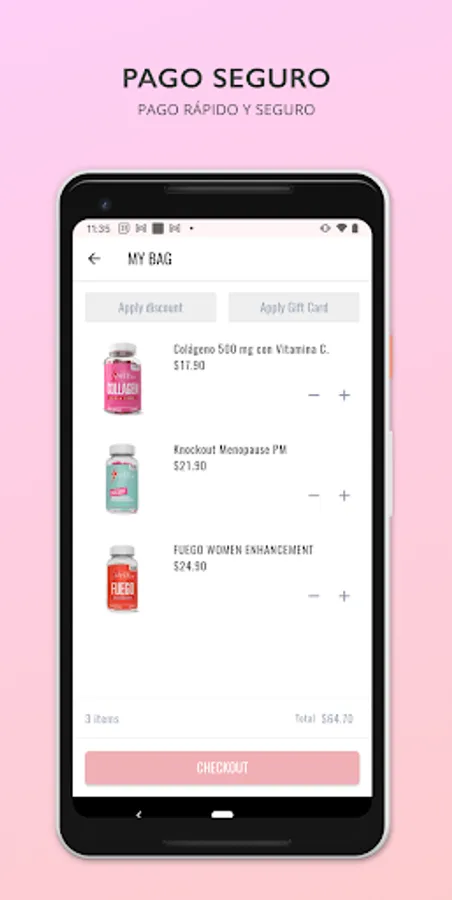 Toque, deslice, compre y asegure sus nuevos productos en un instante con nuestro pago súper fácil.