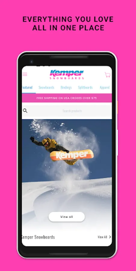Shop all Kemper Snowboards, Bindings, Splitboards, Apparel, and Accessories directly through the app.