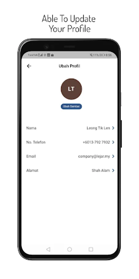 - Update your profile information in profile account.