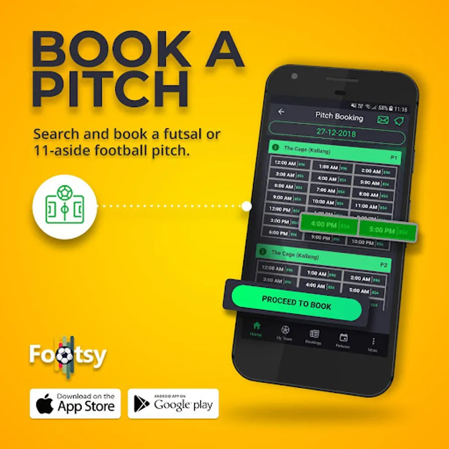 • Go cashless with the e-wallet for players and teams. Pay for your pitches or your share for games through the App to venues or to your team. Don’t fret. Footsy’s got your back.