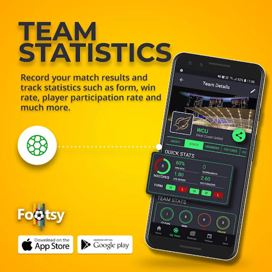 • Create and manage your social and competitive teams complete with attendance lists by sending messages and automated reminders to your team to update their status. What’s more? You will even have your own tactics and formation page!