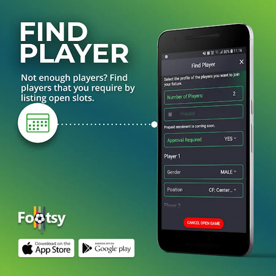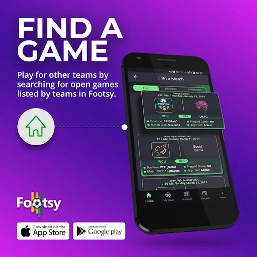 • Short of players for your social games or looking for a team to compete against? List your game and let Footsy help with that.