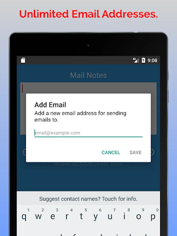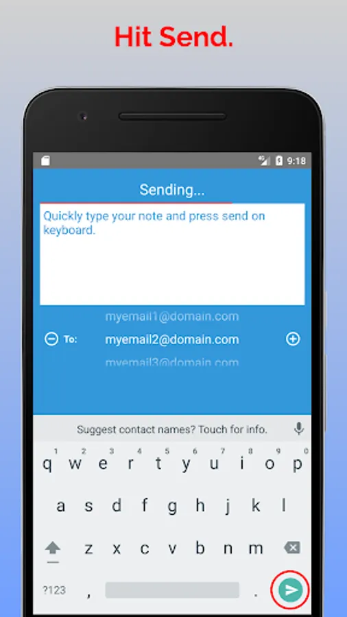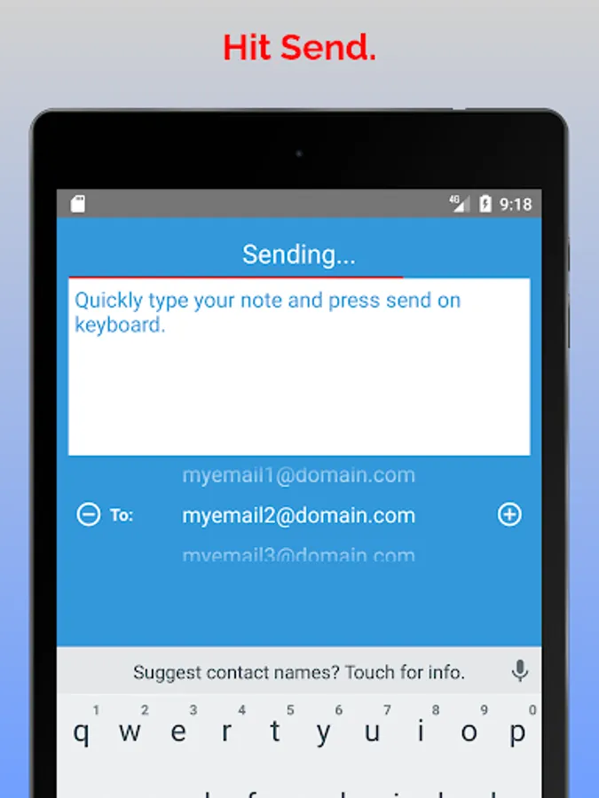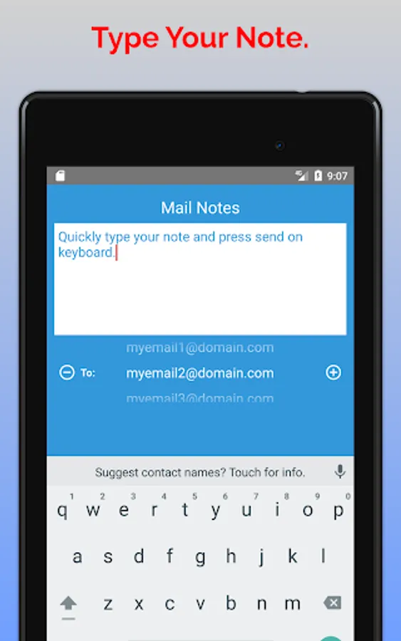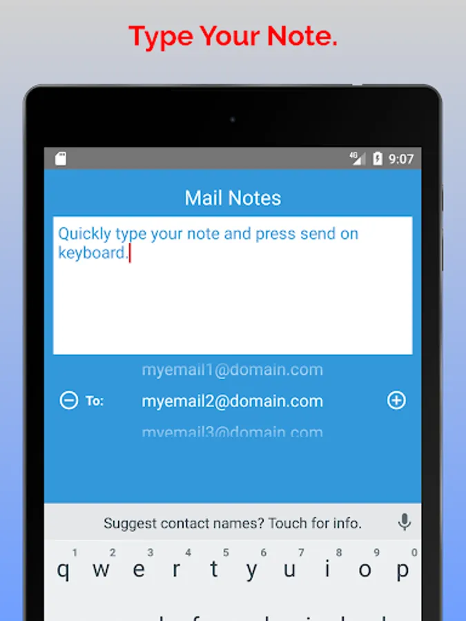 If you have multiple emails you like to send notes to, it just takes a small slide to change the email address.