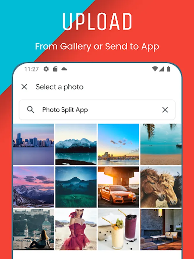 • Send any image from your phone or while browsing directly to the PhotoSplit app.