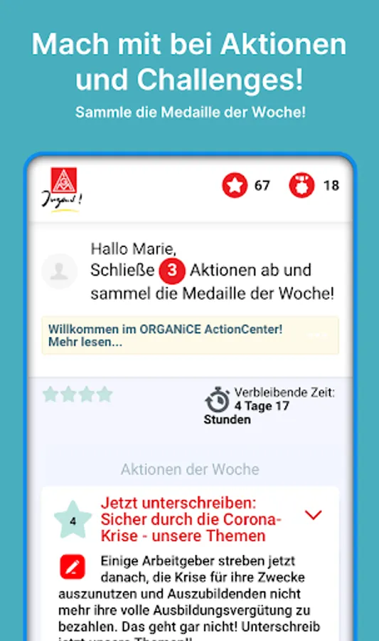 Have fun with the actions and challenges in the ORGANiCE ActionCenter: