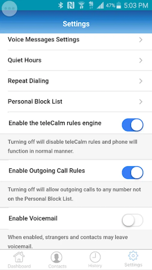 - Enable teleCalm Rules to limit disruptive outgoing calls to family and friends and prevent calls to as-seen-on-TV and other problematic numbers.