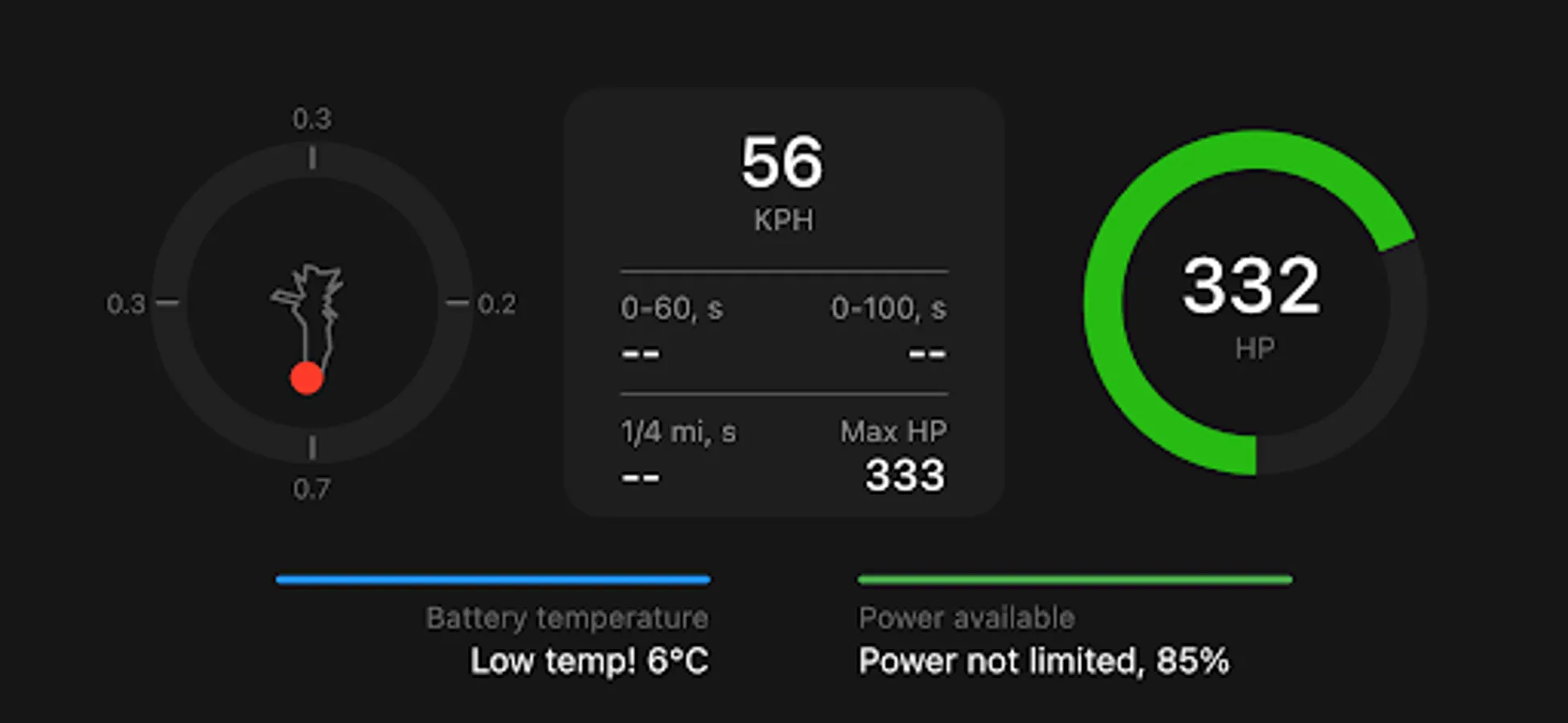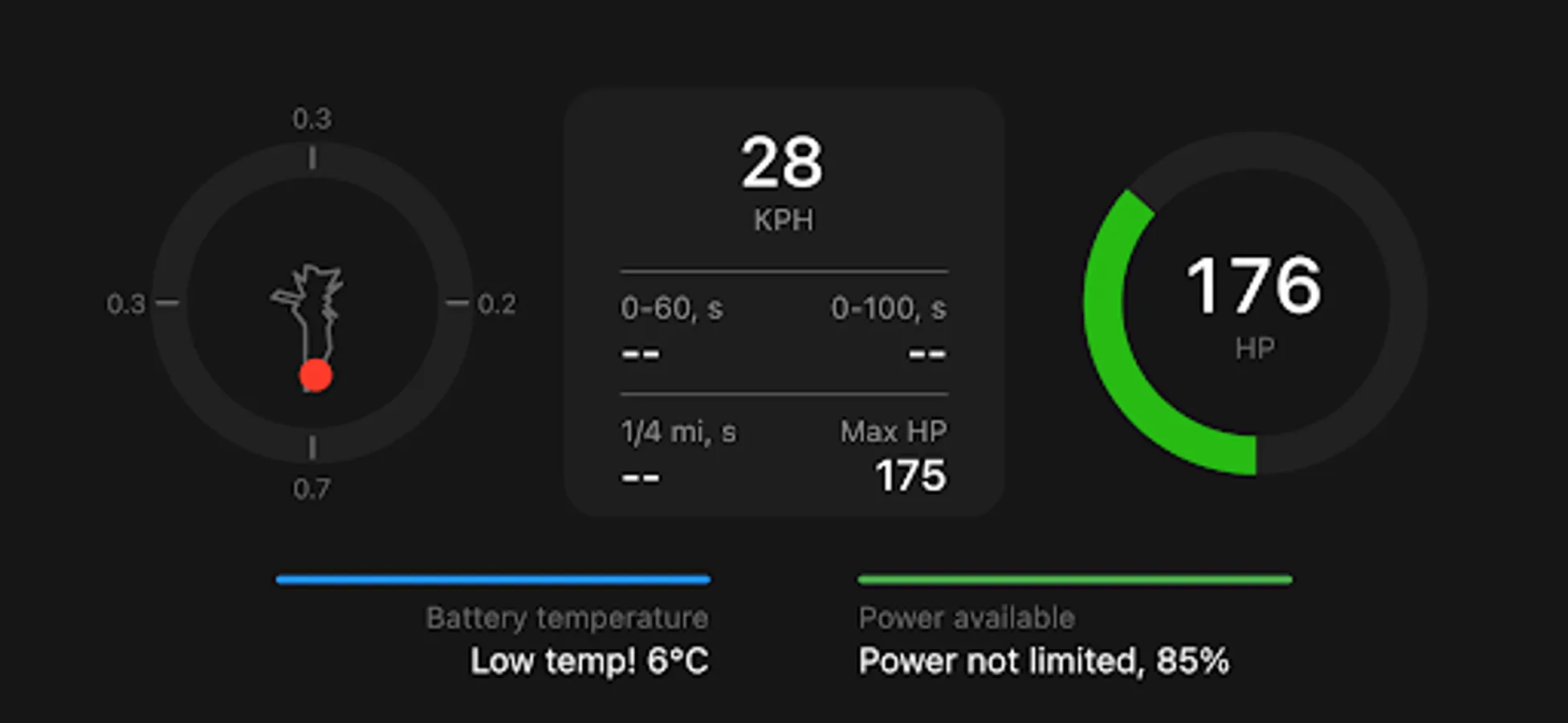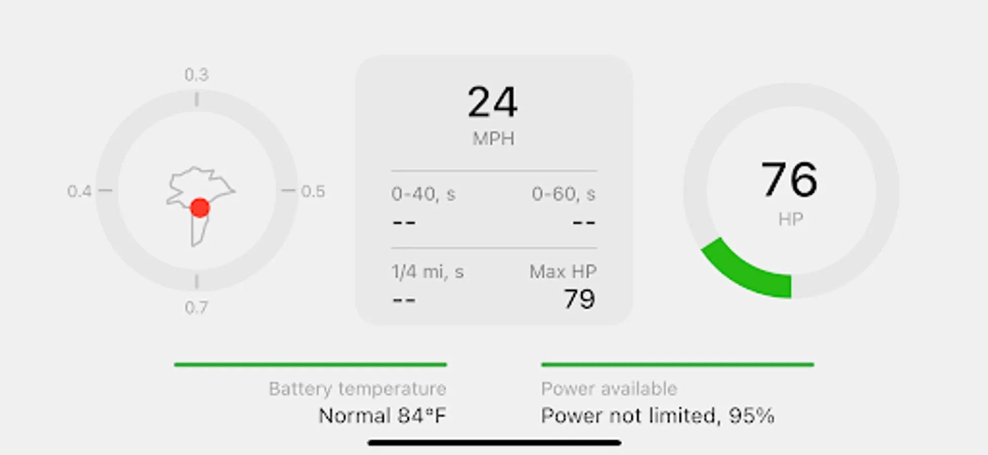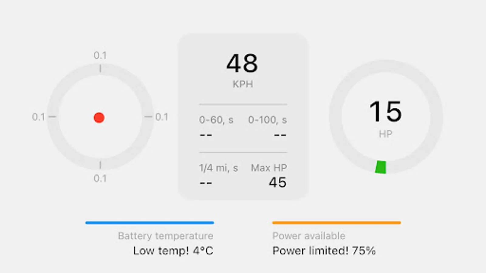 • measure acceleration, horsepower, drag times regardless of the model of your EV