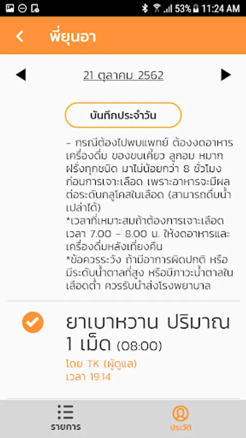 An application that displays patient care plans and daily activities. For the family or carers to follow and record the results completely and correctly