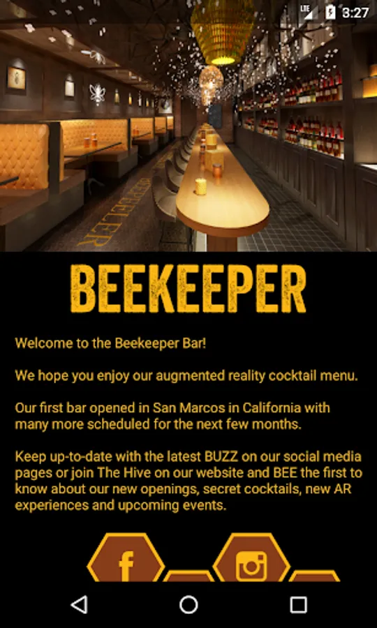 Explore Beekeeper Bar through the magic of Augmented Reality! Don’t know what to pick? Navigate our extravagant cocktails and you’ll BEE delighted by our inspired selection. Have fun while you sit back and relax at Beekeeper Bar.