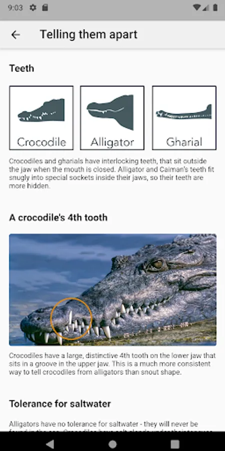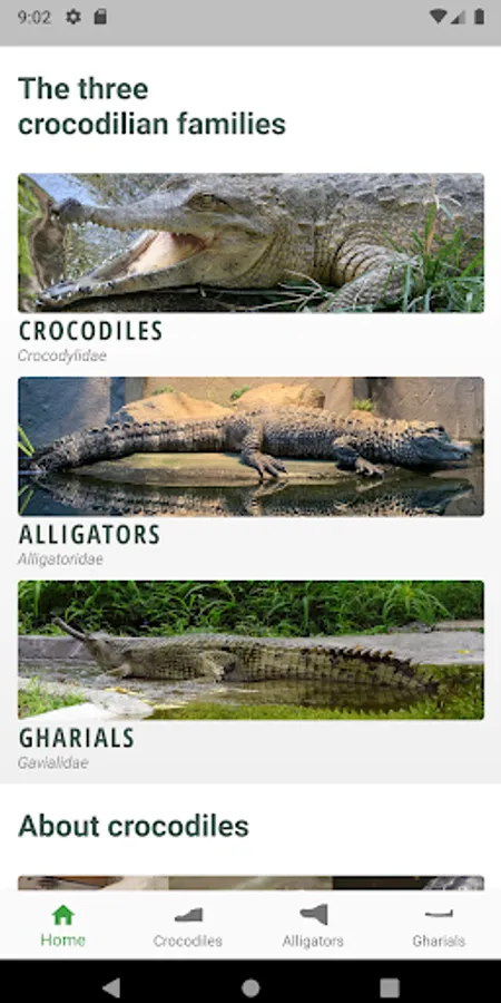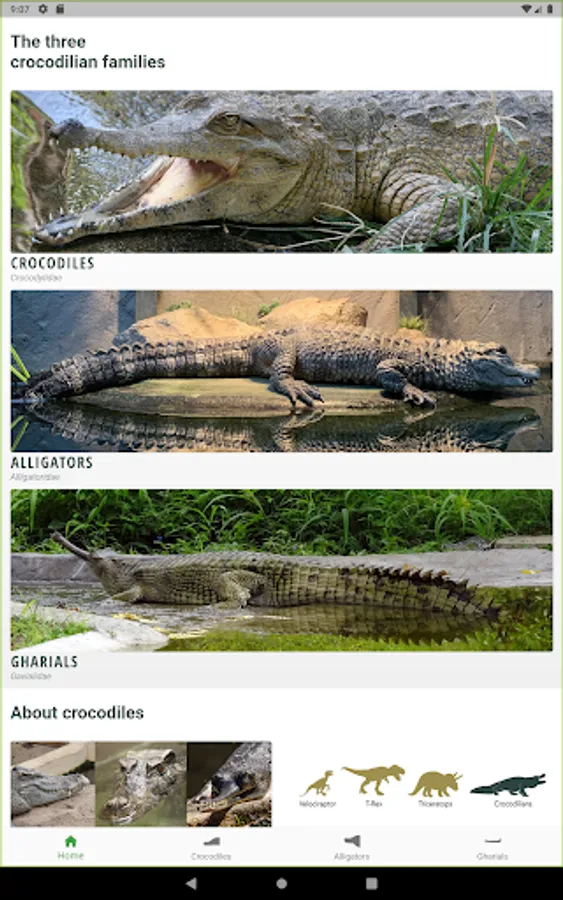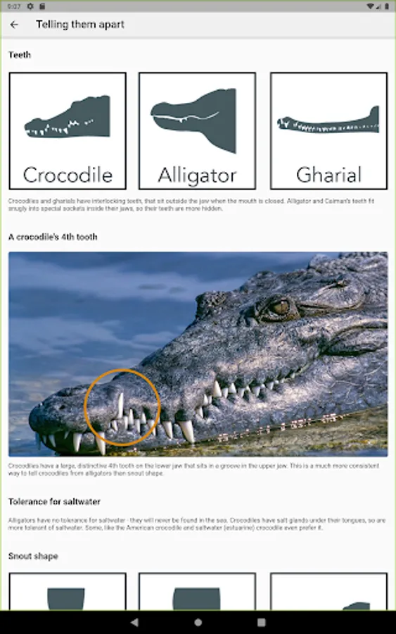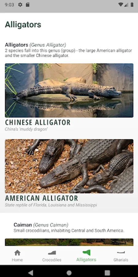 This app is one of the first places that clearly and simply lays out crocodilian classification and taxonomy. Starting with the 3 families (crocodile, alligator, gharial), you can explore the different genera in each. Learn how to differentiate not only caiman species but also the three caiman genera.