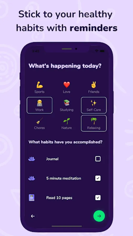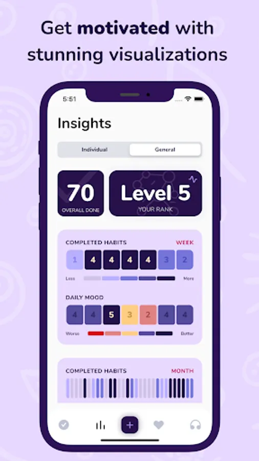 To make your selfcare journey easier, you'll get curated habit building recommendations and powerful audio lessons to get even more of your habits done, while also helping you learn more about personal growth and habit tracking.