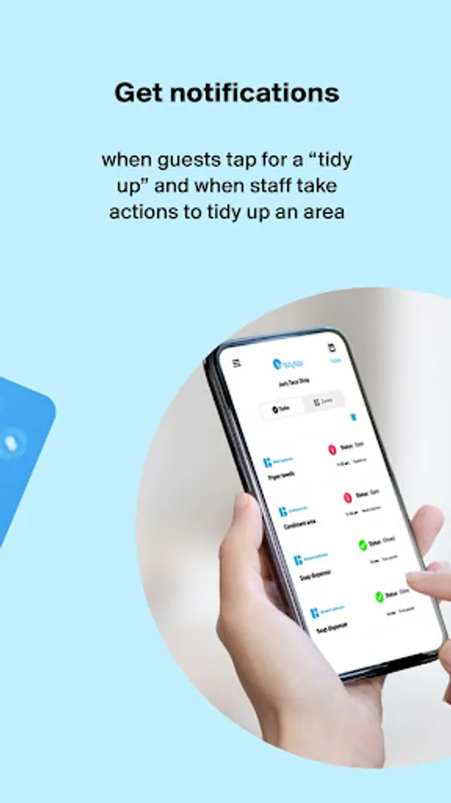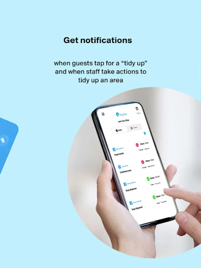 Meet Tidy Tap, the most flexible tap-to-notify solution to help keep your retail operations running smoothly. Dirty restroom? Is your soap dispenser empty or have your paper towels out? It’s hard to make sure those areas tucked at your restaurant, hotel, store, or shared workspace are always clean and items are stocked. Add a Tidy Tap Bluetooth sensor to any area or item you’d like to monitor. If the area needs to be tidied up, anyone can tap the sensor twice and notify the appropriate staff. Or you can assign a Tidy Tap Bluetooth sensor to any item that might need regular refills like a soap dispenser, paper towel dispenser, or even the office printer! When the item is empty, anyone can tap the Bluetooth sensor twice to send a notification. Tidy Tap is also a great tool for regular check-ins, like rounding, travel paths, safety walks, and more. Strategically place Tidy Tap’s Bluetooth sensors in areas you want checked at regular time intervals. Whoever is supposed to check-in, simply taps the Bluetooth sensor twice to let you know they performed the task. If you want to take it a step further, you can customize a sensor and assign it to any task. If activated, it will send a notification to the right person. The Tidy Tap app works with Tidy Tap hardware. A WiFi hub connects to the Bluetooth sensors, which sends the notification data to the cloud and to your app. Simply clear the notification after you have fixed the issue.