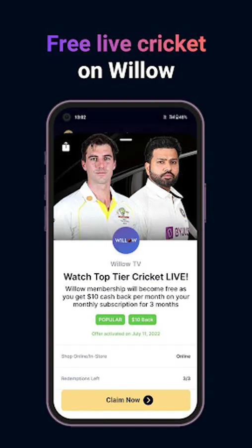 STREAMING AND LIVE CRICKET - GET CASHBACK FOR RELAXING TOO!