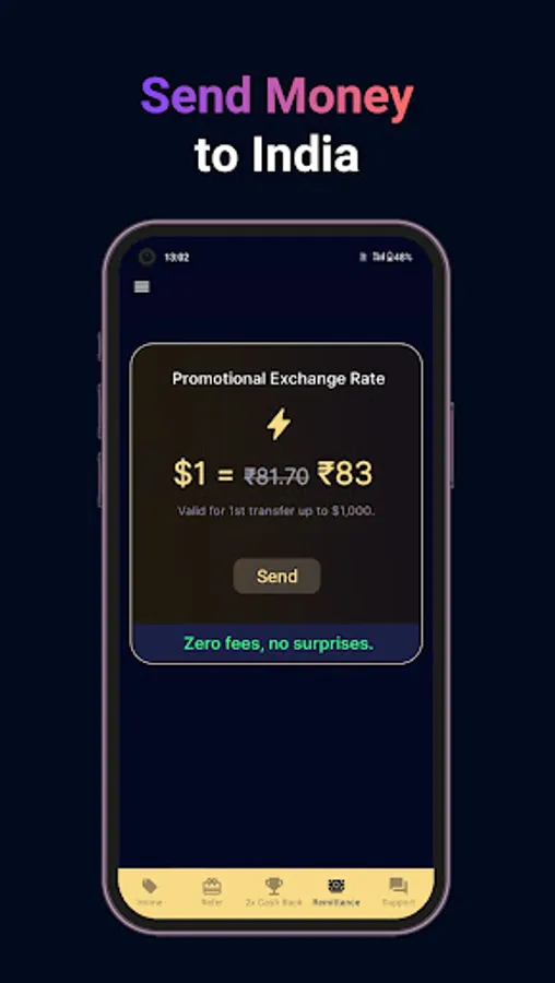 Let’s start with Abound's unparalleled exchange rates when sending money to India. Not only is Abound’s money remittance feature a fast, secure, and convenient way for NRIs in the USA to send money to their loved ones in India, it also offers the most competitive exchange rates and ZERO transfer fees around. Put simply, Abound is the most affordable option for remitting money to India.