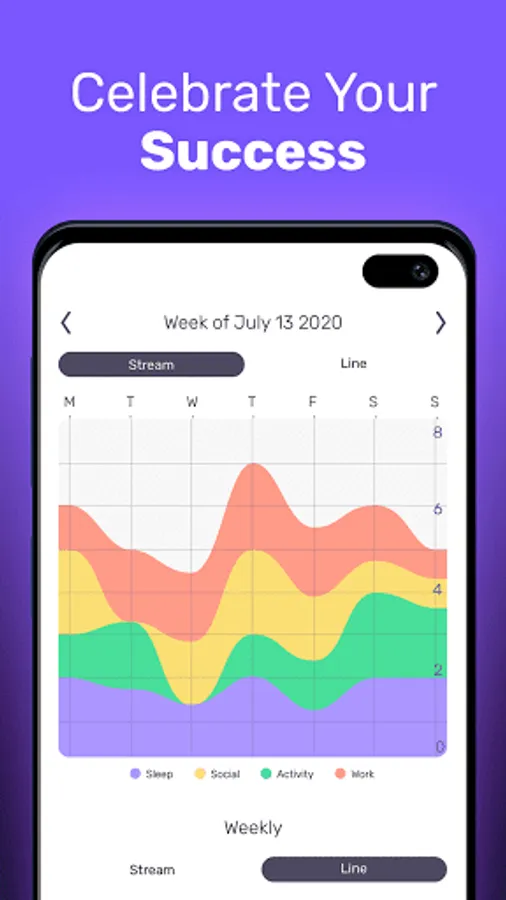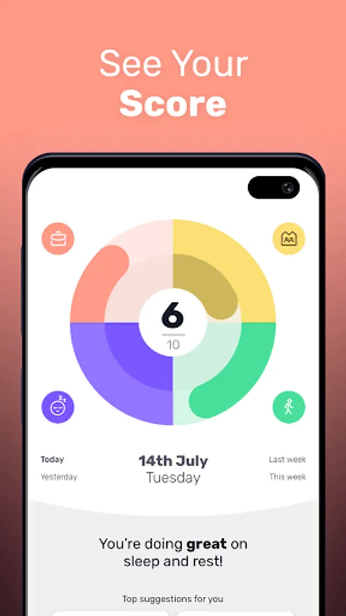 Track how you are doing in four key parts of your life: Social life, Activity, Work balance, and Sleep.