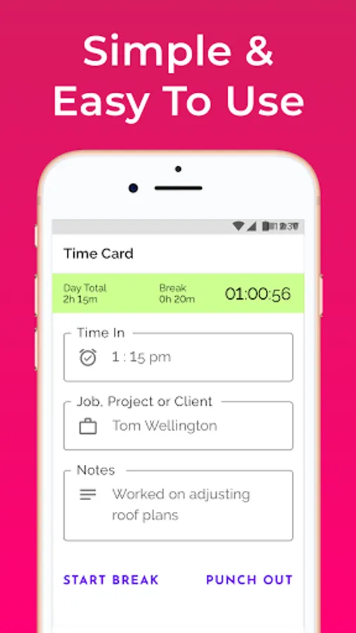 Our hour tracker is for contractors, business owners, self-employed, hourly employees and freelancers, anyone who would need to track work hours using a work time clock app.