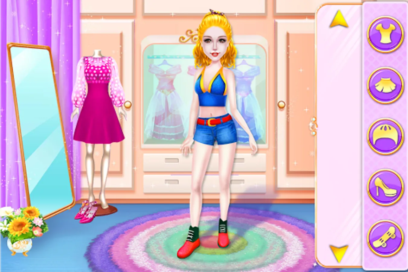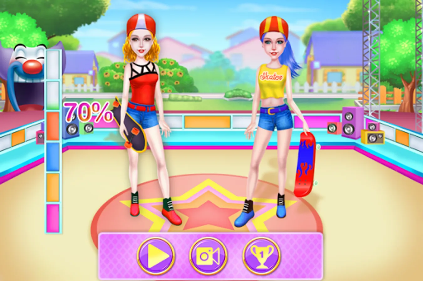 Skateboard skating dance star girl is a free skater game for girls. Roller skating and roller blading is a fun activity and a great form of exercise. You need to learn the fundamentals of roller blading or inline skating tips to take your skills of roller skater on next level. First of all, put on your skating equipment, most important equipment is roller skate, you can buy pair from a sports shop. A helmet, knee pads and wrist guard is also important for safety reasons. Now you need to walk like a duck, assume the right posture, with your heals together.