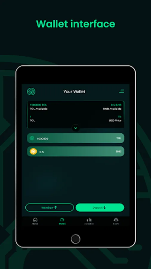 Stake, deposit and withdraw ToLcoin instantly with ease.