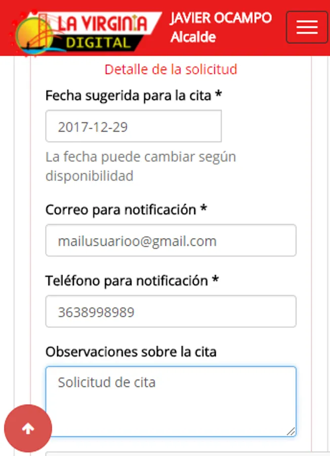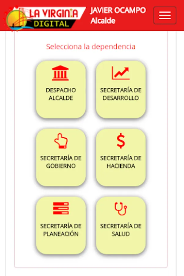 This is a web application that allows citizens of the municipality of La Virginia Risaralda, request appointments with various officials of the municipal administration, also contains tourist information, a module for consulting indistria and trade and one for the information on monitoring the Cauca river. Application developed by Torresoft for Adminsitración "The Virginia we all want" Dr. Javier Ocampo, Mayor.