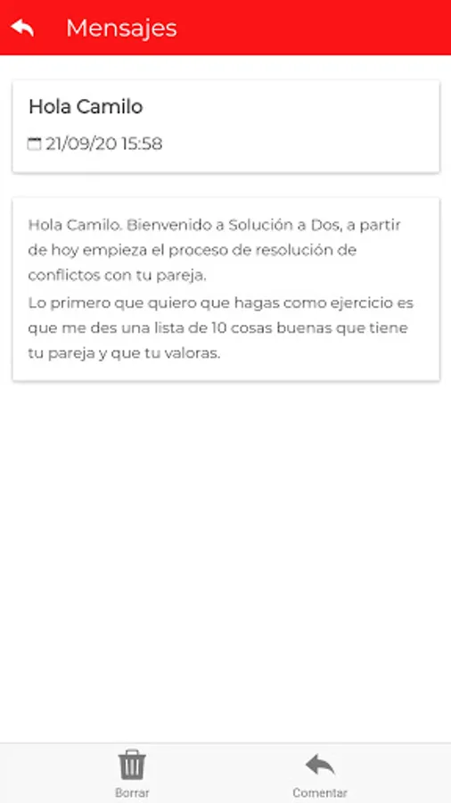 We help couples in trouble to find solutions to their conflicts. We are an online platform in which we draw up a plan focused on action and a solution, so that your relationship improves week by week. We are putting activities to do for them, we are talking about the results and we are making progress in solving the problem.