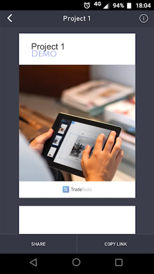Share - Allows project sharing through diverse platforms such as WhatsApp, Email and Facebook.