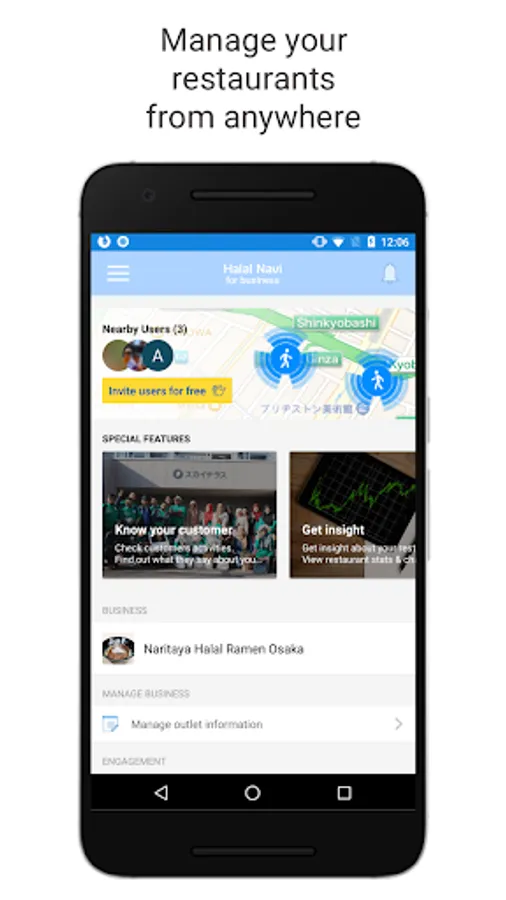 Halal Navi for Business app puts the power in the hands of the business owner. You can reply to reviews from users, track customer activities in your restaurant, manage your outlet information, and many more.