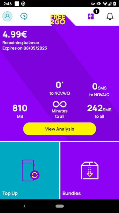 Check in real time your FREE2GO account balance quickly and easily. No time to waste! Check all the latest offers, buy app exclusive bundles, talk to all & sms to all bundles and if you run out of credits? No problem! Recharge your account at once with just one tap!