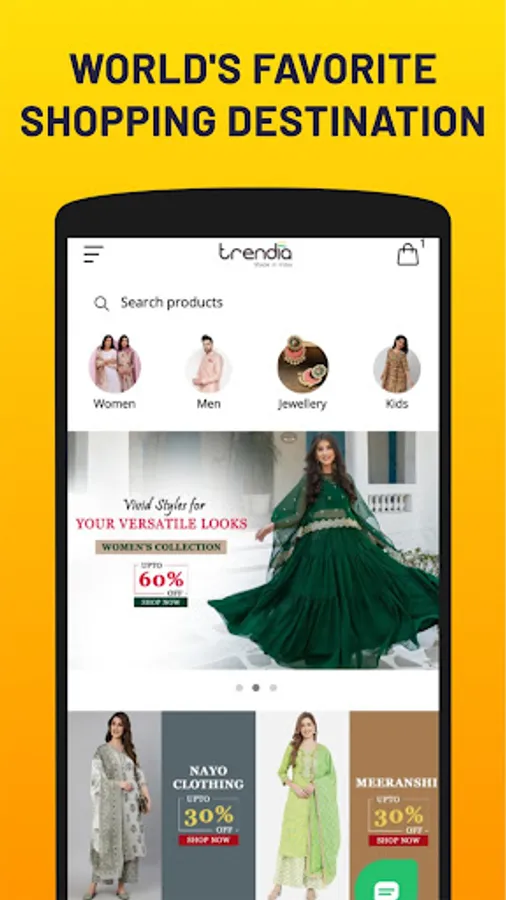 One-stop-shop for Indian fashion: Trendia online shopping app has over 35k+ clothing, jewellery online shopping, and food showcasing Indian roots and timeless clothing styles for women, men, and kids.