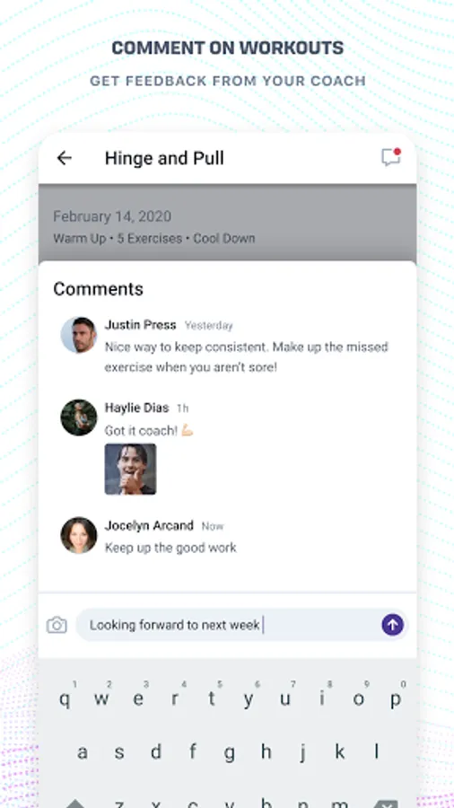 • See their workout schedule, and coaches can track completed and missed workouts.