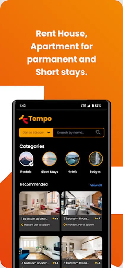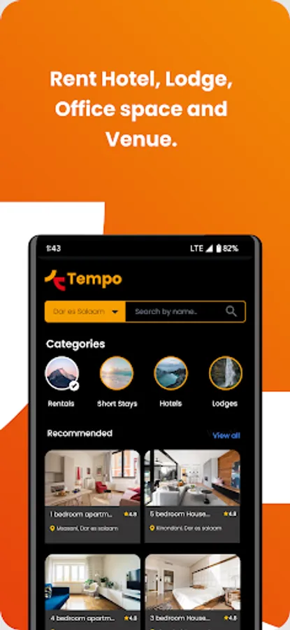 Tempo Africa is a free app specifically designed for Renting. houses and apartments, Short stays, booking hotels, lodges as well as renting office spaces and venues without involving a broker(dalali)