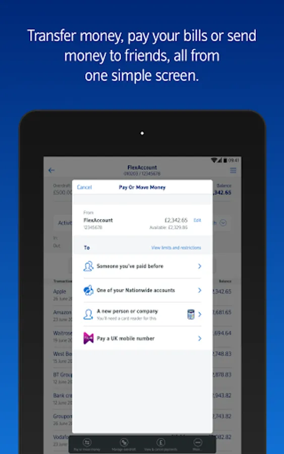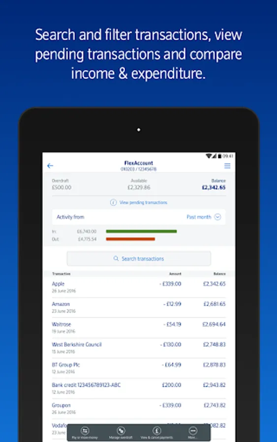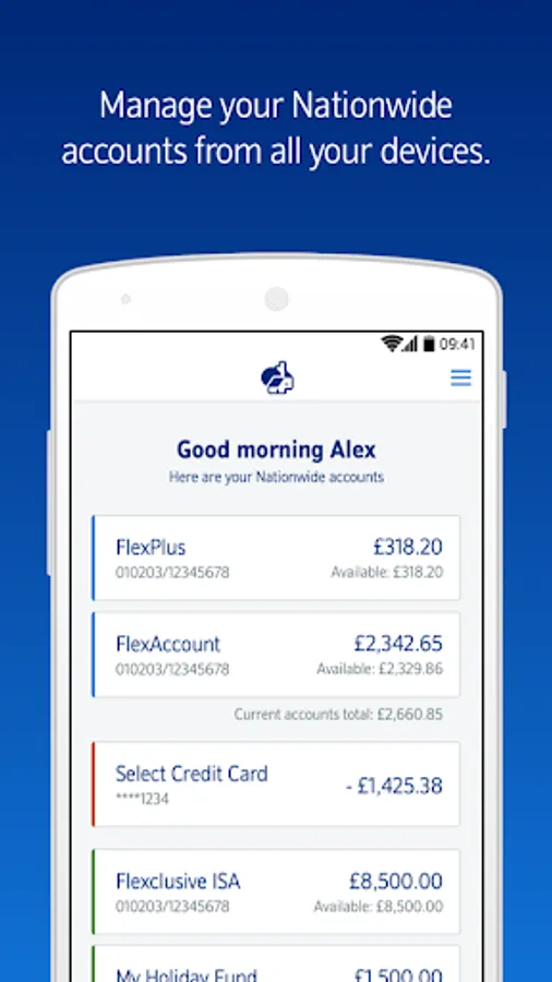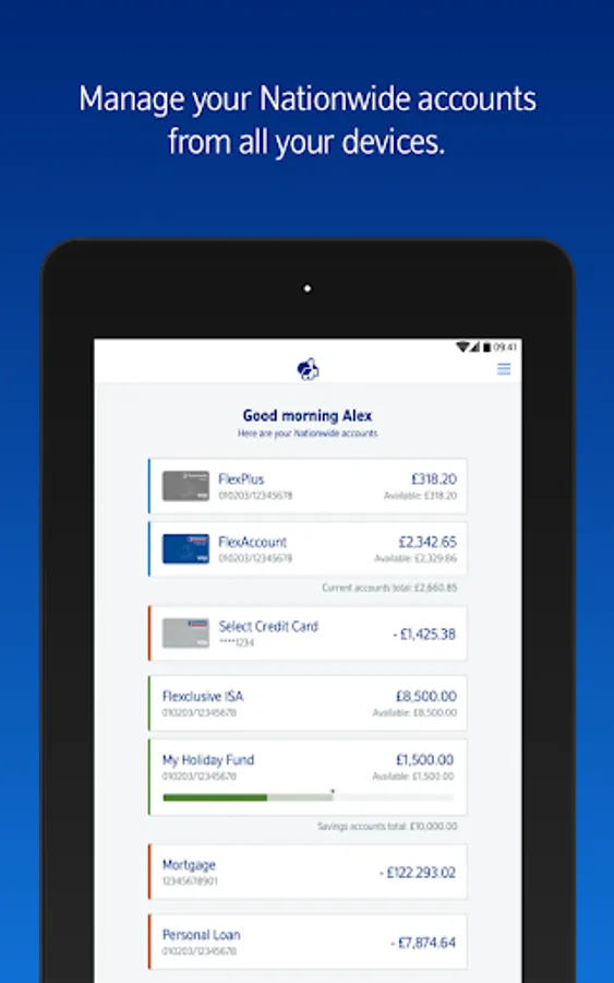 • View your accounts; savings, loans, mortgages, credit cards and current accounts.