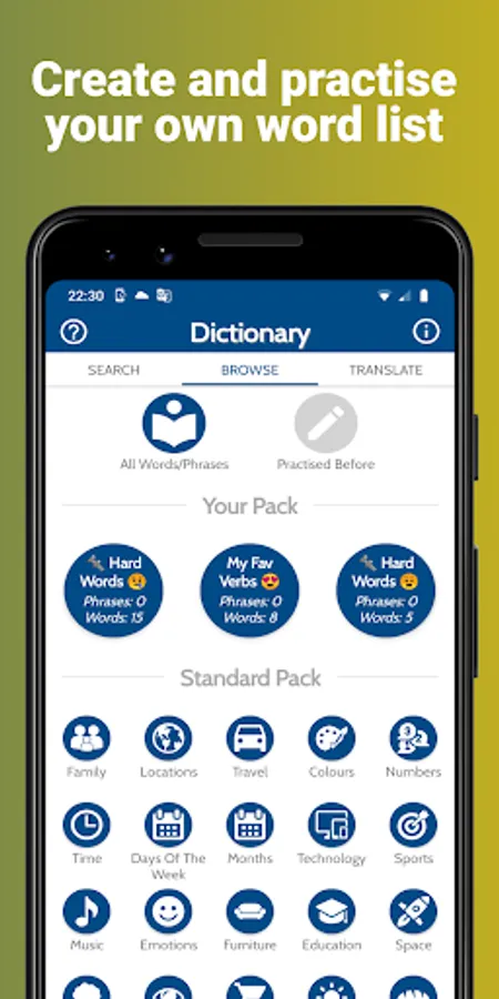 - Learn any word by practising a list of words that you have created.