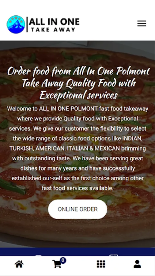 All In One Polmont is one of the best take away in Polmont FK2 0PZ and offers menu items such as Pasta, Biryanis, Rollovers, Kebabs, Hoggy, Garlic bread, pizzas, kebabs, burgers, tandoori dishes, curries and mexican dishes and also provides delivery in Hallglen, Brightons, Redding Grangemouth, Whitecross, Linlithgow, Maddiston, Reddingmuirhead, california, shieldhill, rumford, Falkirk and near by areas.