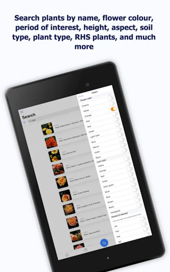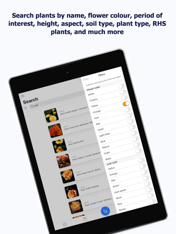 - Quickly identify your plants and search by name, flower colour, period of interest, height, aspect, soil type, plant type, RHS plants, and much more