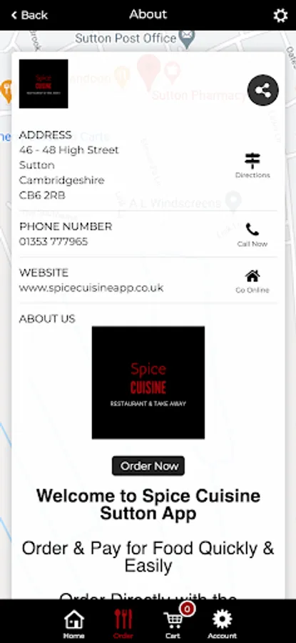 Welcome to Spice Cuisine's Mobile App. Spice Cuisine is based in Sutton near Ely in Cambridgeshire United Kingdom. Download Today and use our App to Quickly & Easily Order & Pay for Food to Take Away Collection or Delivery. Ordering directly with us at the restaurant. We deliver to lots of villages and towns in the local area including Sutton, Witcham, Witchford, Mepal, Haddenham, Aldreth, Wilburton, Stretham, Ely, Chatteris, Earith, Willingham and Bluntisham