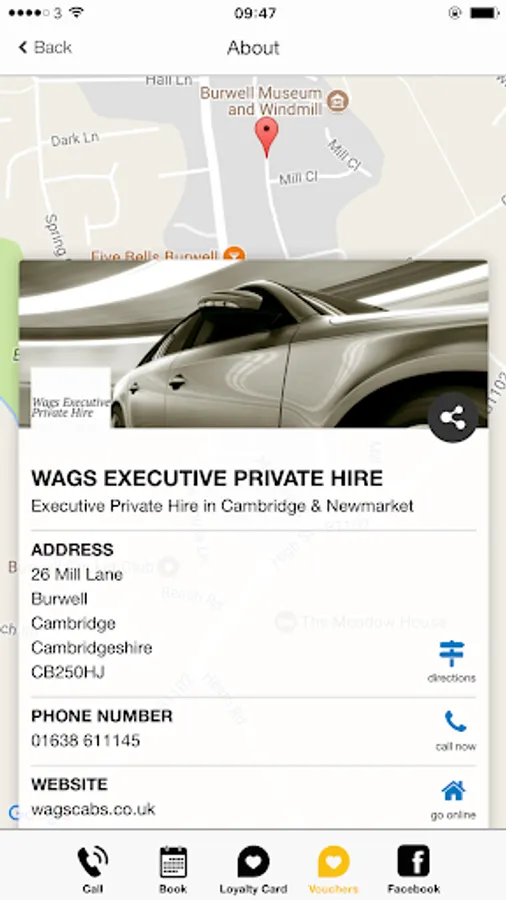 Wags Executive Private Hire Mobile App enables users to contact and book taxis and Private Hire with Wags Executive Private Hire quickly and easily. Users can also benefit from our app Loyalty Card and app Vouchers for rewards and discounts when travelling with us. Wags operate in Newmarket, Cambridge and surrounding areas offering trusted private hire services with over 20 years experience. We can offer affordable luxury travel for Airport bookings at all major London, East Anglia and Midland Airports, Horse Racing Meetings, Business Travel and much more.