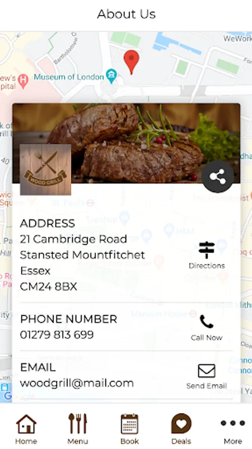 Welcome to Wood Grill Restaurants App. Download today to view our menus, book a table at your local Wood Grill restaurant, see our latest events and access our latest deals and offers, whilst staying up to date with our latest restaurant news. With restaurants in Stansted Mountfitchet in Essex, Huntingdon in Cambridgeshire and Croydon, Royston Herfordshire Wood Grill Restaurants produce delicious meals using the freshest ingredients and produce from our trusted suppliers. We have a great selection of starters, a Grill Menu, Burger Menu, Fish Menu, Specialties and Pizza Menu without forgetting Dessert! We also serve a selection of wines & champagne.